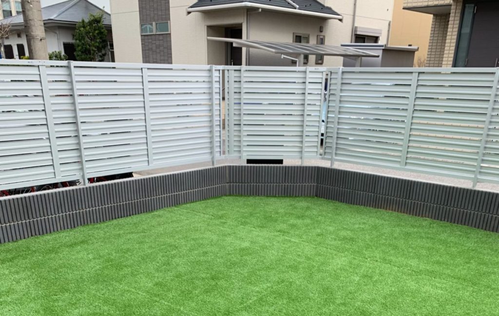 人工芝もキレイに完成しました!庭がめっちゃ広く感じる!