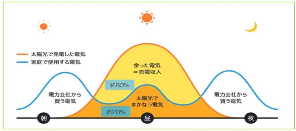 念のため記載しておくと、太陽光発電装置で発電した電力は自分たちで使うこともできるし、使わなかった場合は東京電力に売ることもできます。なので、消費電力が減る(電気代が下がる)、そして売った電力が収入になる(儲けになる)と言う2つの効果があります。