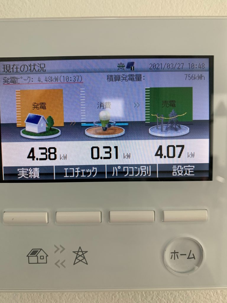 ちなみに、太陽光発電のモニターをみるのはとても面白いです。